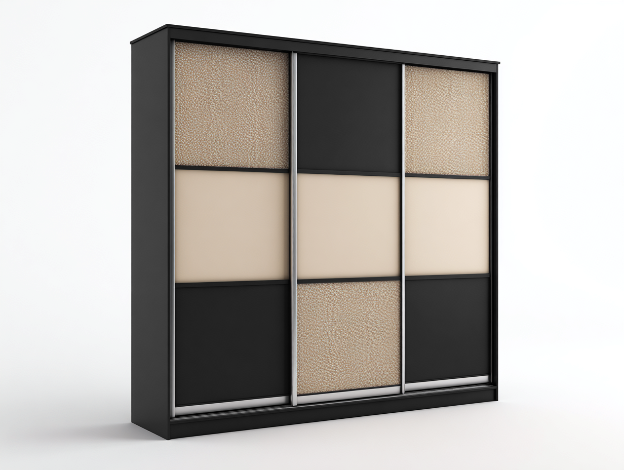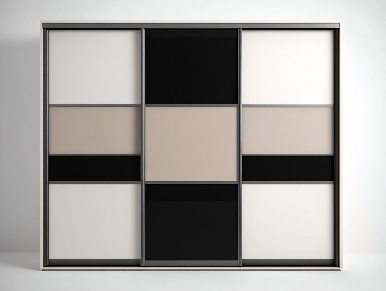 Armario de Madera con Puertas Correderas 220x60x210 cm-Blanco / Negro / Beige-Estilo Moderno